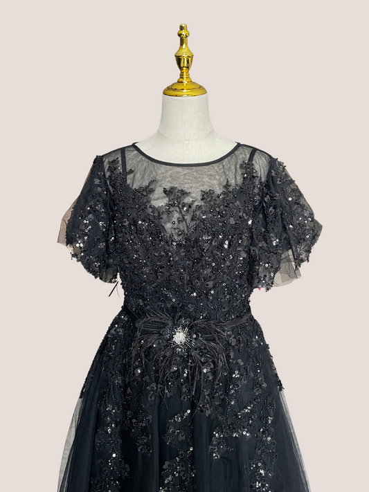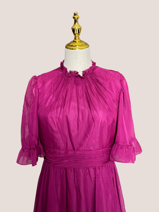 Ruffled Mock Neck Flutter Sleeve High Low Hem Gown