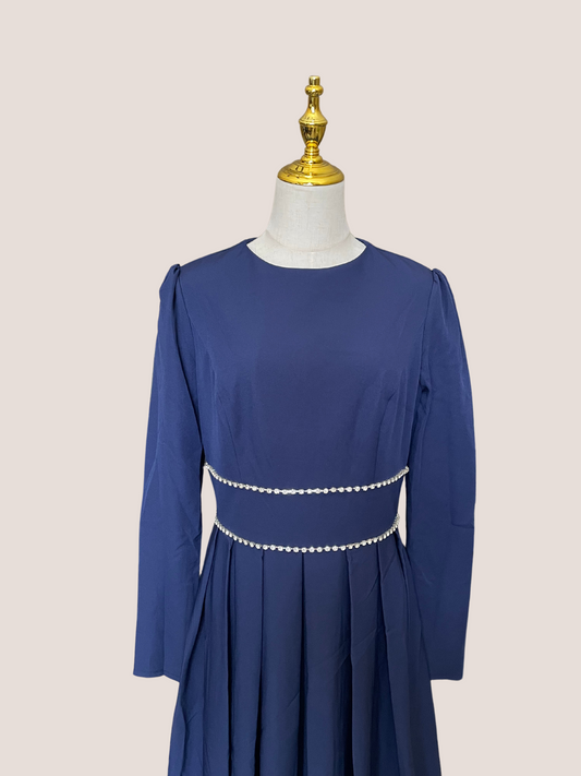 High Neck Long Sleeve Embroidered Dress
