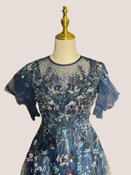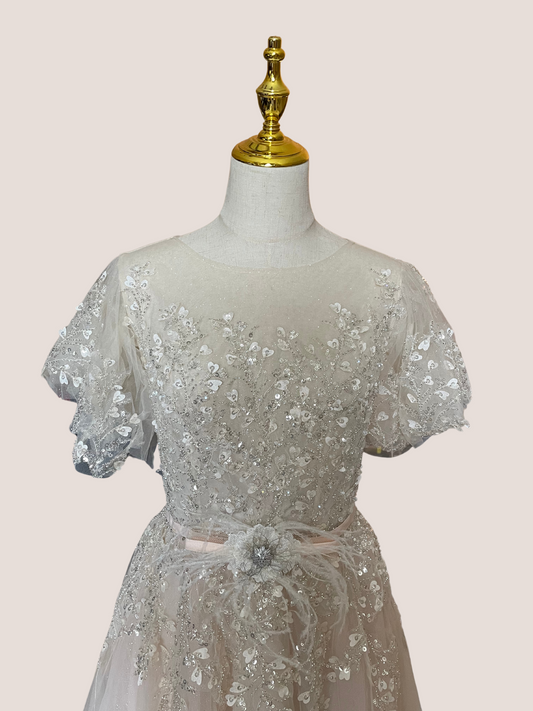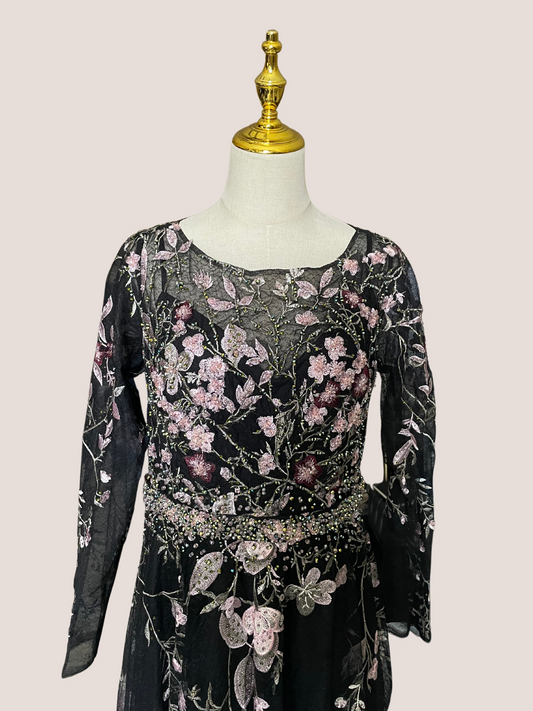 Sequin Tulle Long Sleeve Gown