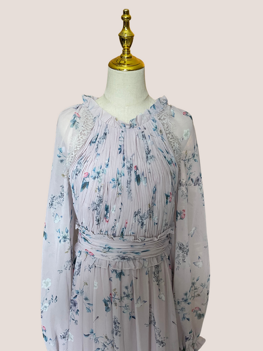 Flutter Sleeve High Neck Embellished Floral Dress