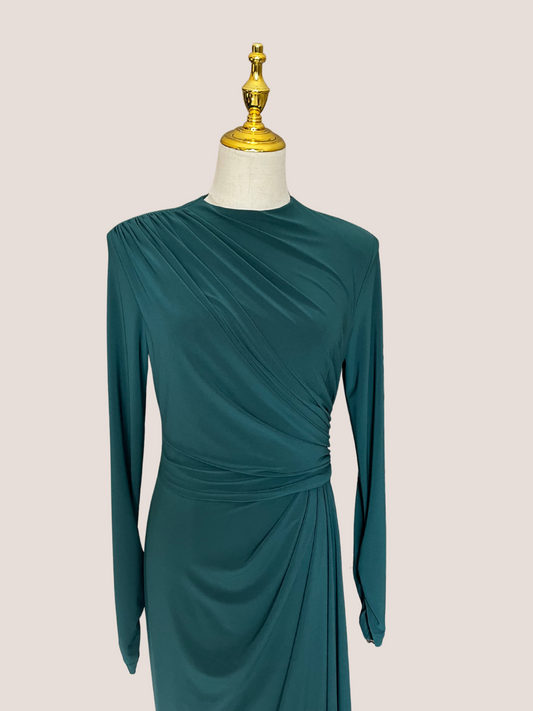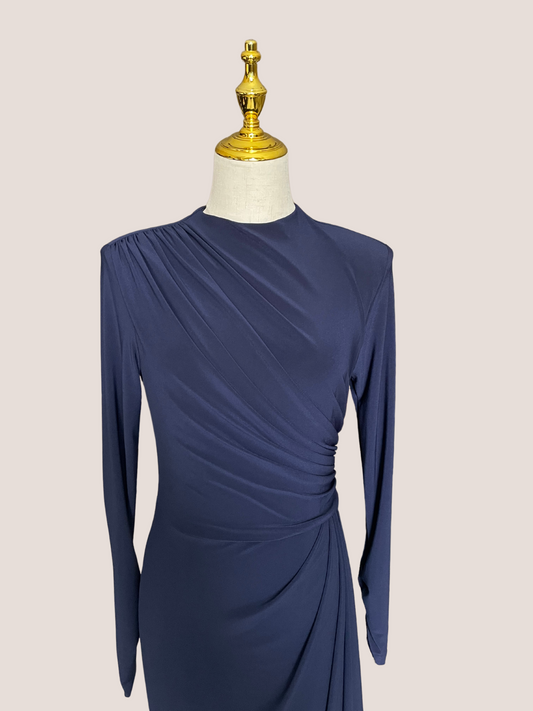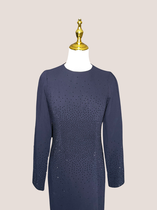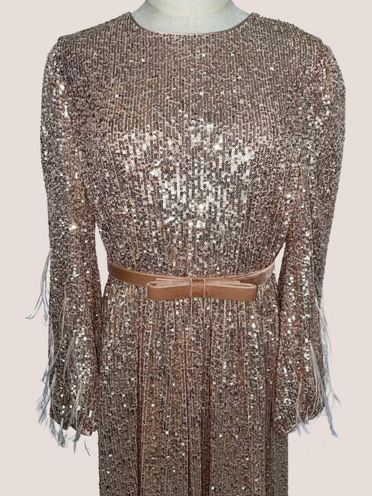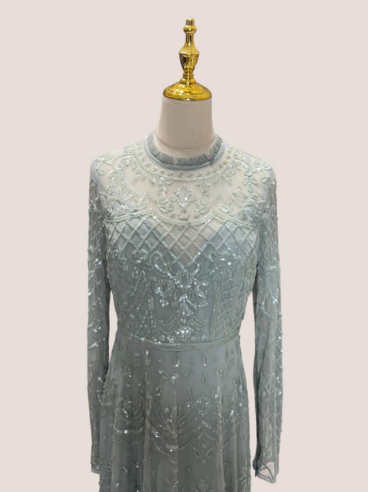 Sequined Illusion High Neck Long Sleeve Midi Dress