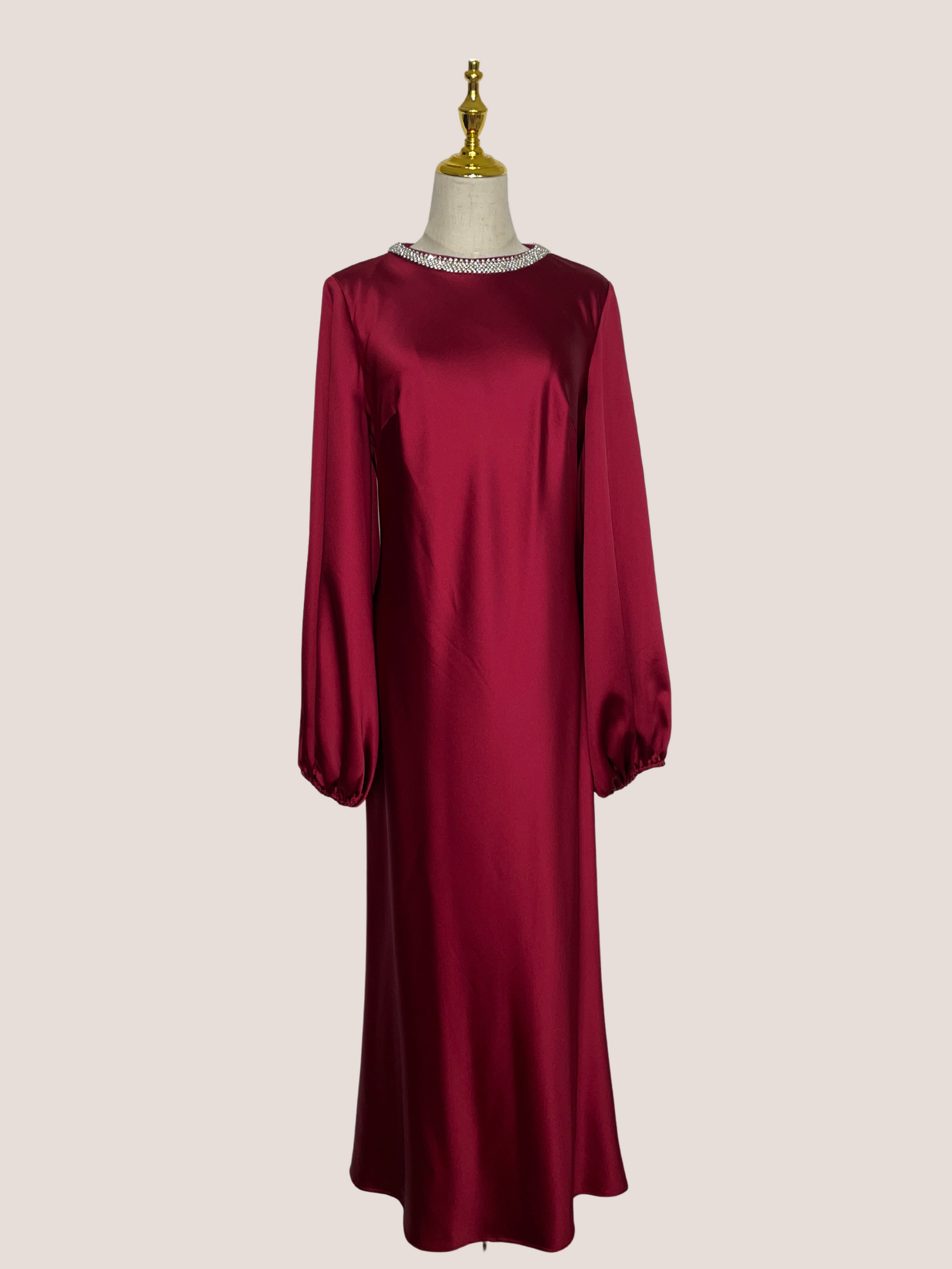 Crew Neck Long Sleeve Crystal Detail Dress